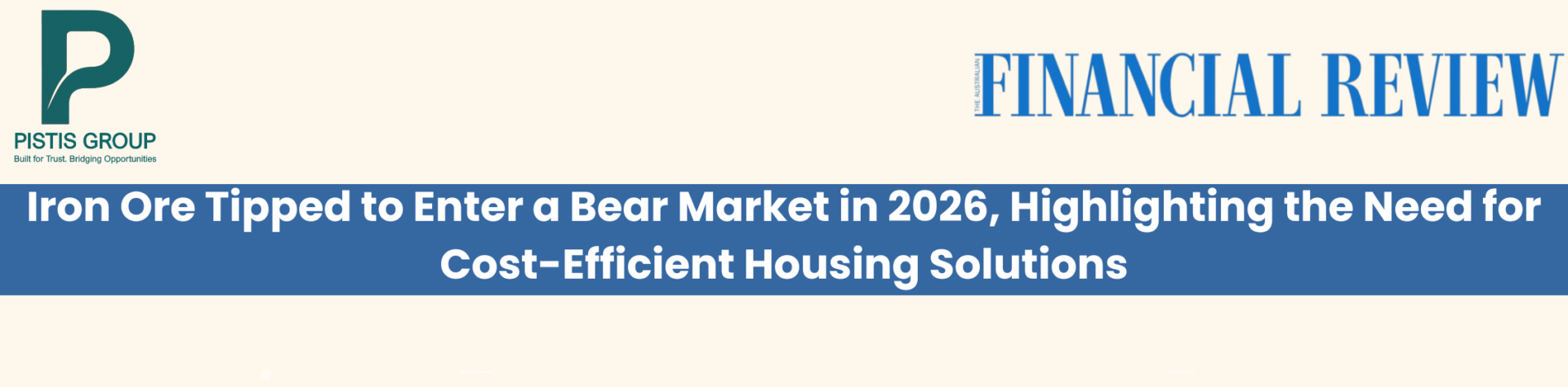 Iron Ore Tipped to Enter a Bear Market in 2026, Highlighting the Need for Cost-Effficient Housing Solitions